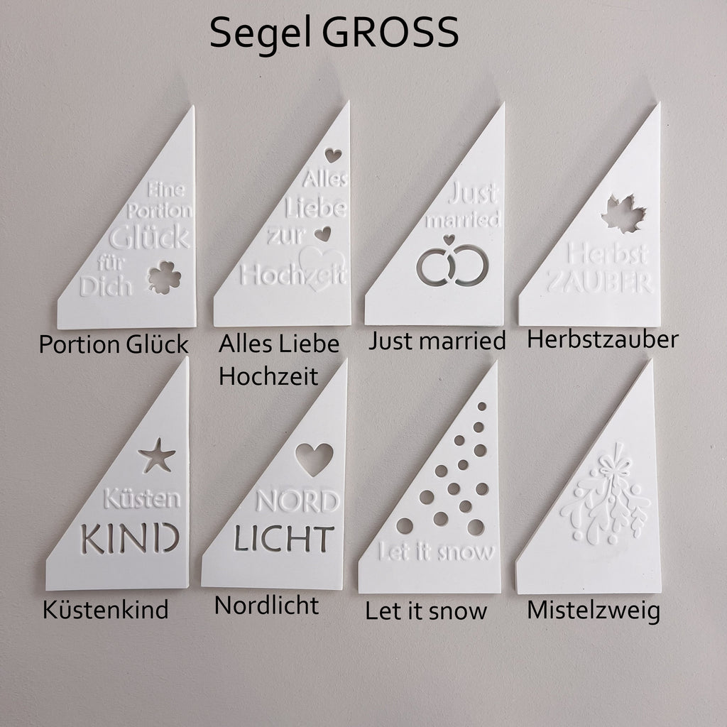 - Segel groß (L x H x T): 7 x 11,5 x 0,5 cm