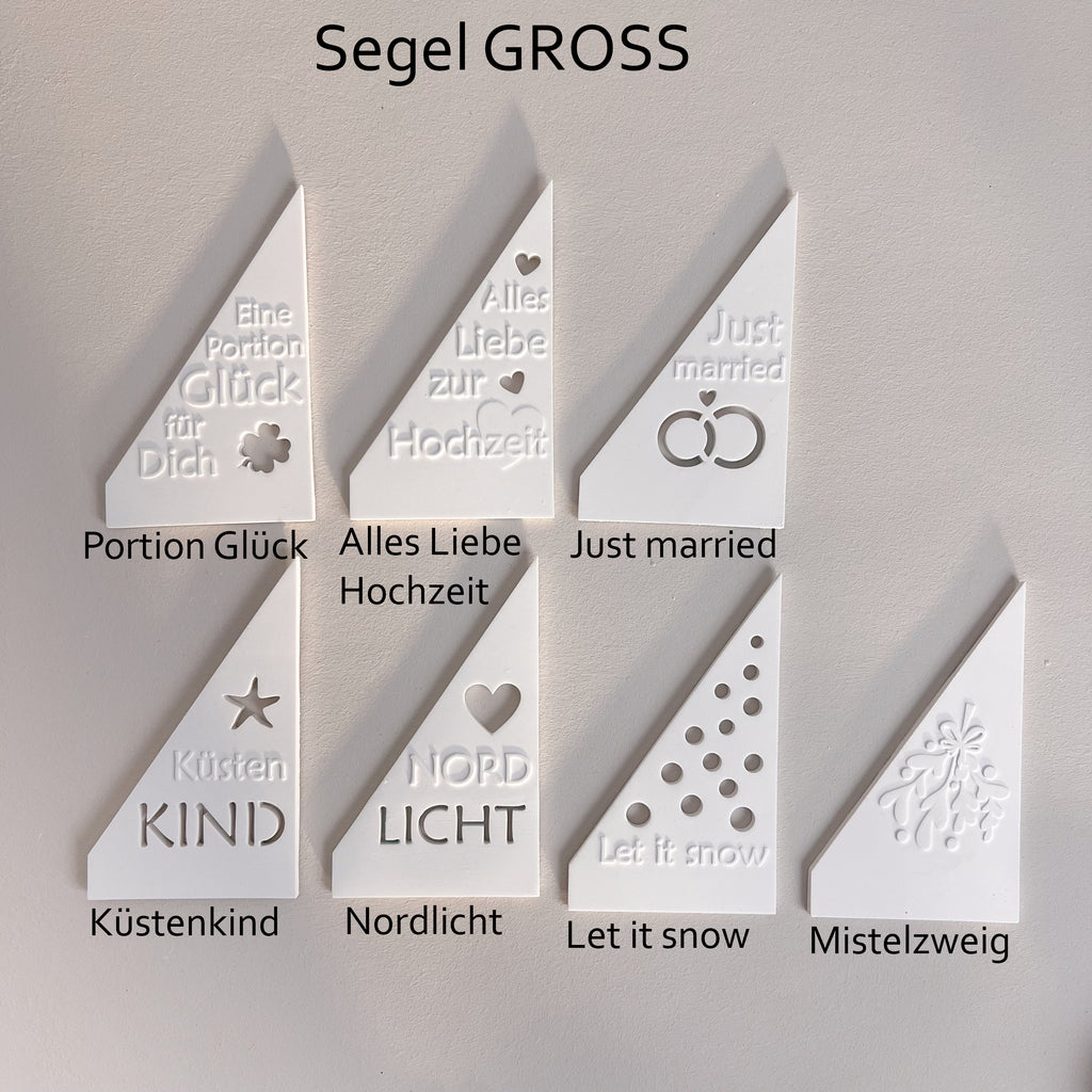 - Segel groß (L x H x T): 7 x 11,5 x 0,5 cm
